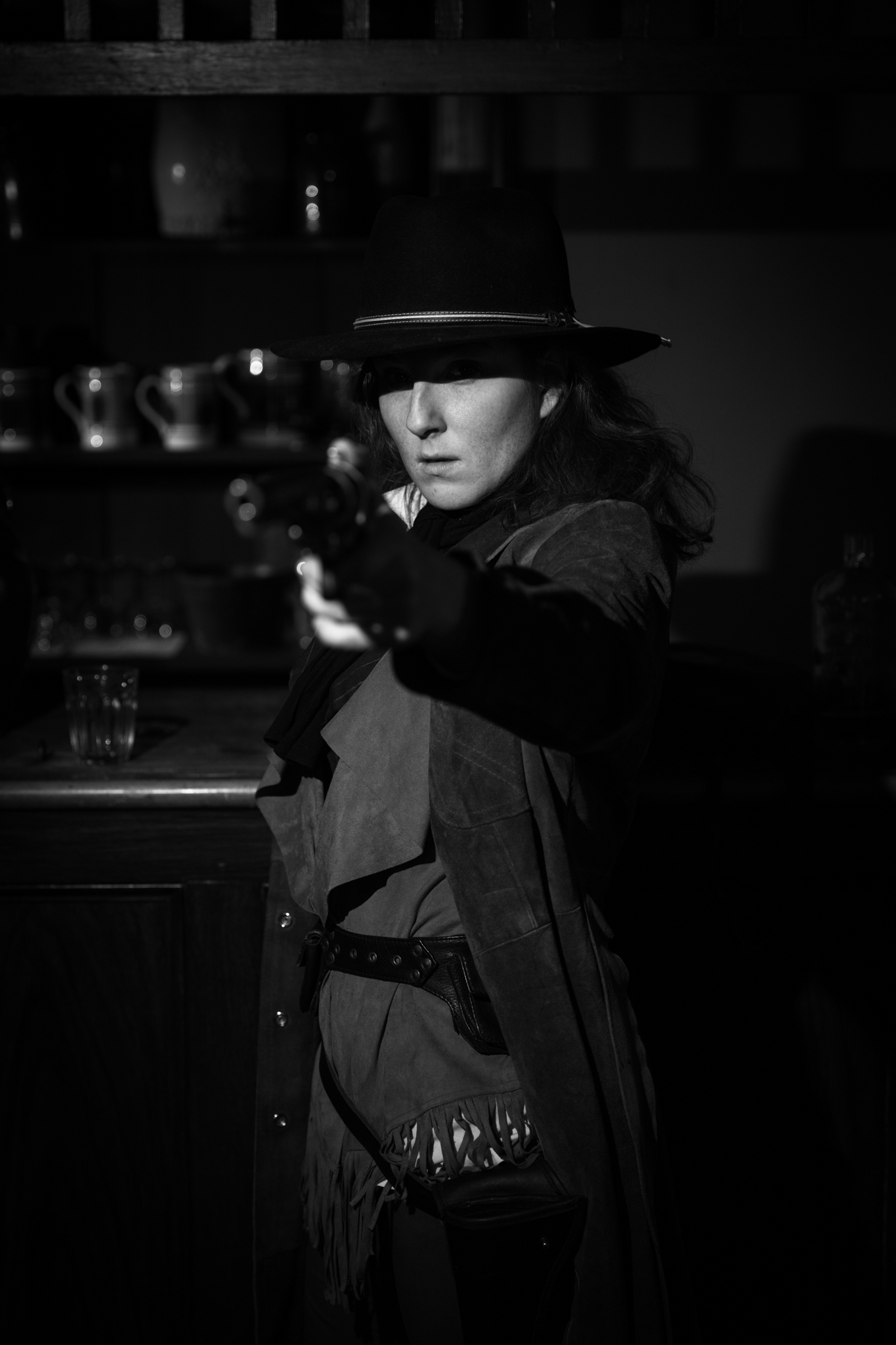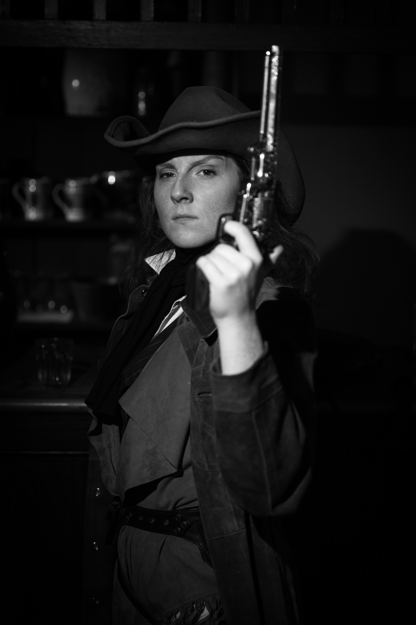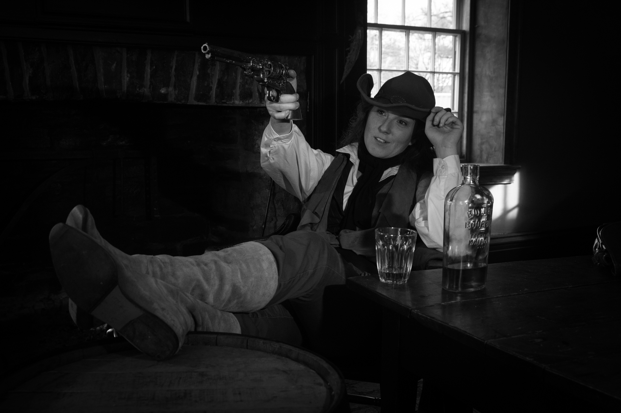 My talented friend Ryan Fisher of Rainyfresh Photography let me check a bucket list item off my list: being a historic cowgirl. I have always loved Calamity Jane (from Deadwood was an amazing interpretation!) and Back to the Future 3 – heck I live my life in the times of the Gold Rush, but I’m stuck in Toronto 1850s not the Klondike! My costume in this photo-shoot was inspired by Calamity’s classic look from her 1880’s portrait, too. I have been training to be her with stage combat, whip work, gun work, and of course horseback riding.