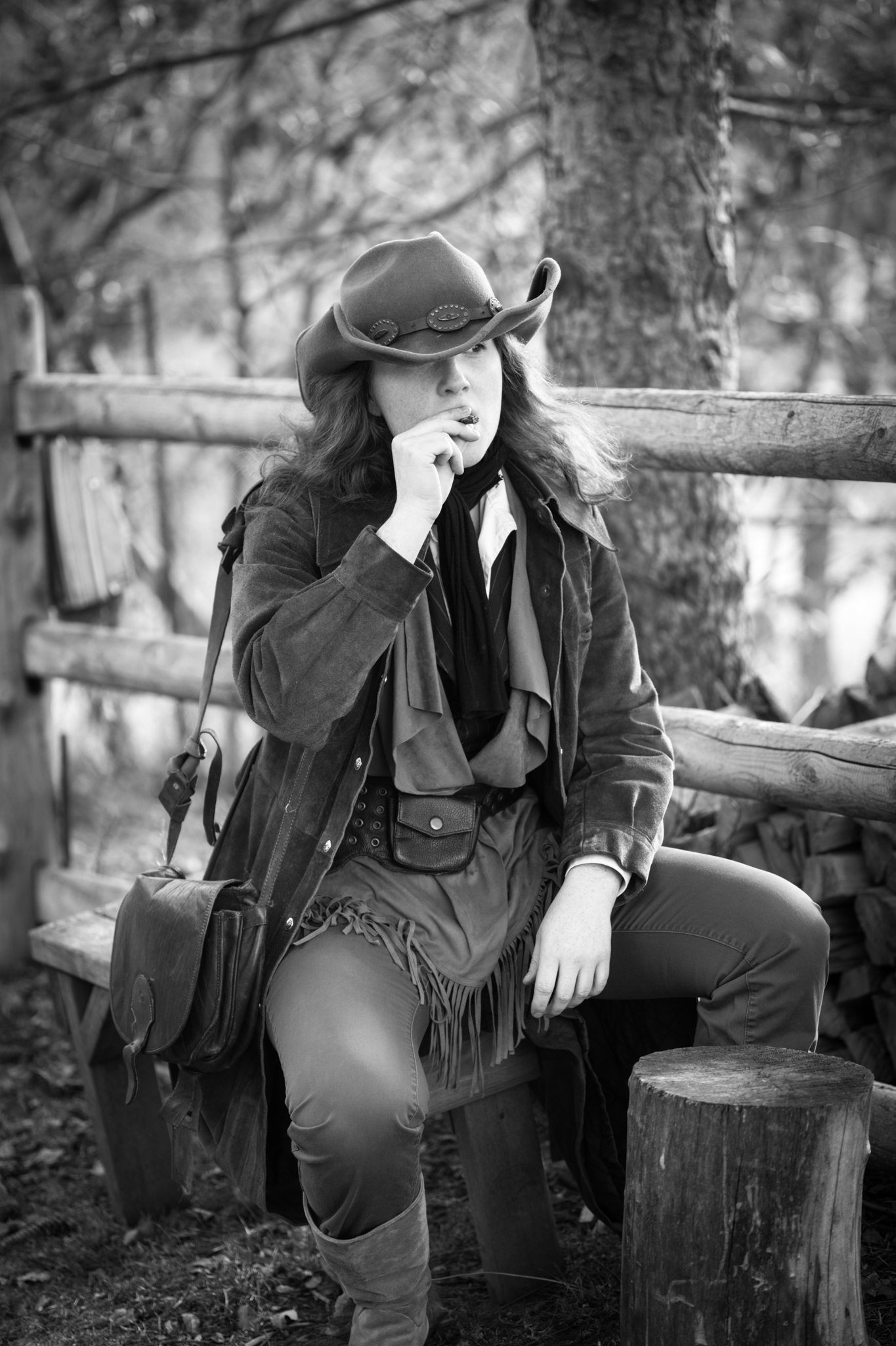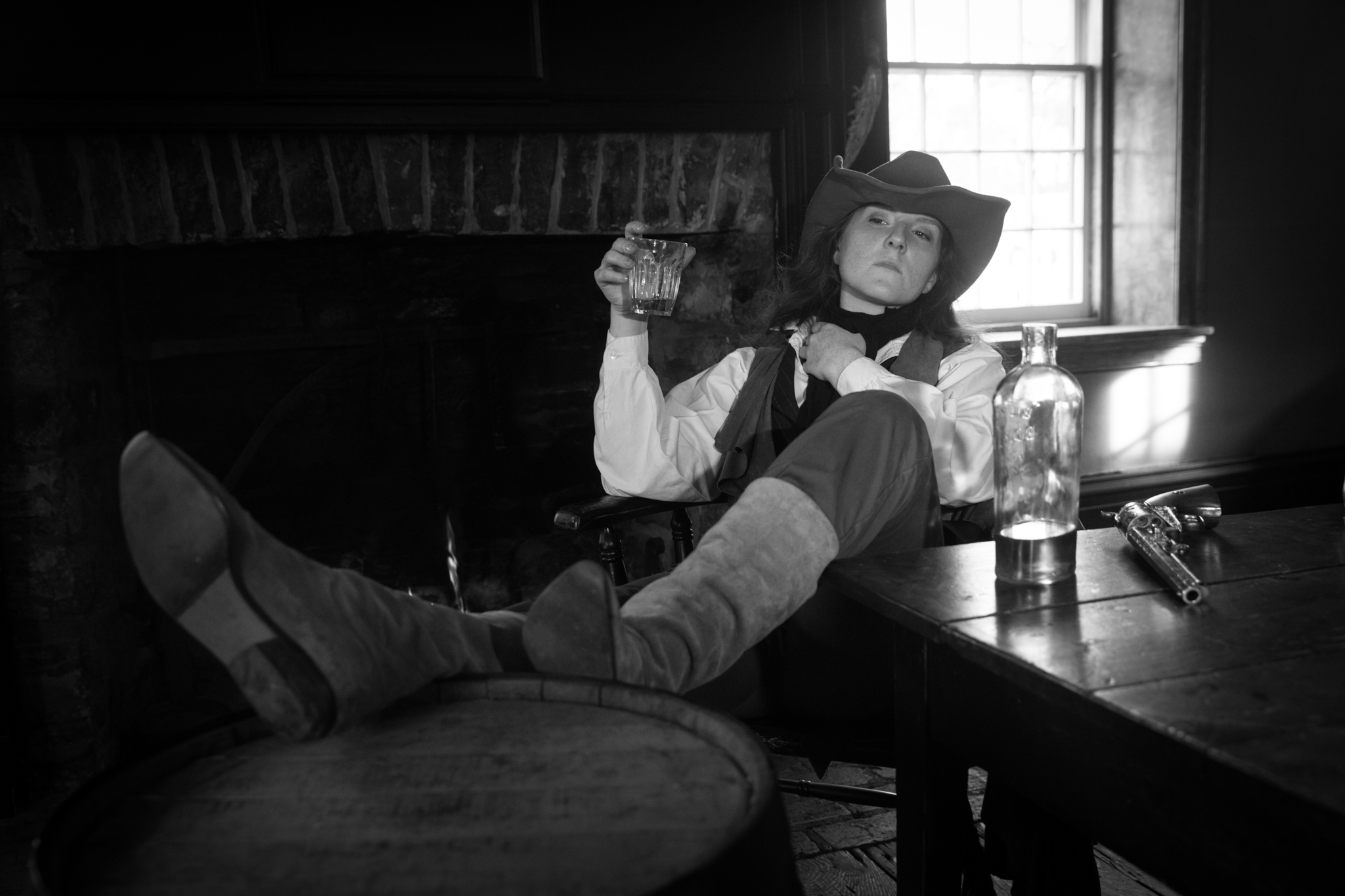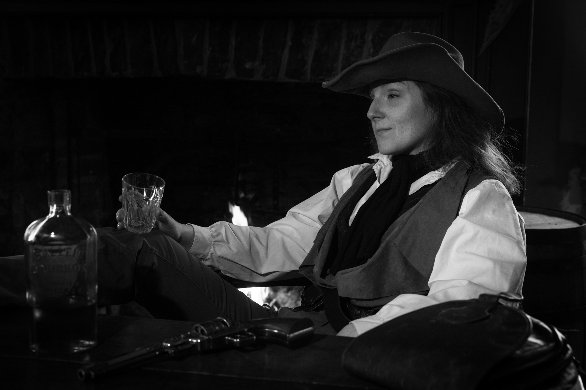 My talented friend Ryan Fisher of Rainyfresh Photography let me check a bucket list item off my list: being a historic cowgirl. I have always loved Calamity Jane (from Deadwood was an amazing interpretation!) and Back to the Future 3 – heck I live my life in the times of the Gold Rush, but I’m stuck in Toronto 1850s not the Klondike! My costume in this photo-shoot was inspired by Calamity’s classic look from her 1880’s portrait, too. I have been training to be her with stage combat, whip work, gun work, and of course horseback riding.