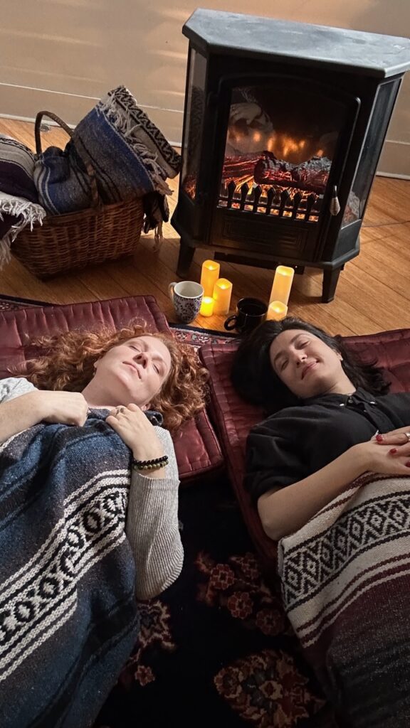 2nd hour: 40 minute guided meditation on releasing grief led by Adrianna; as Esné our reiki practitioner moves around the room while people relax and release sounds or movement they feel will help their grief release.