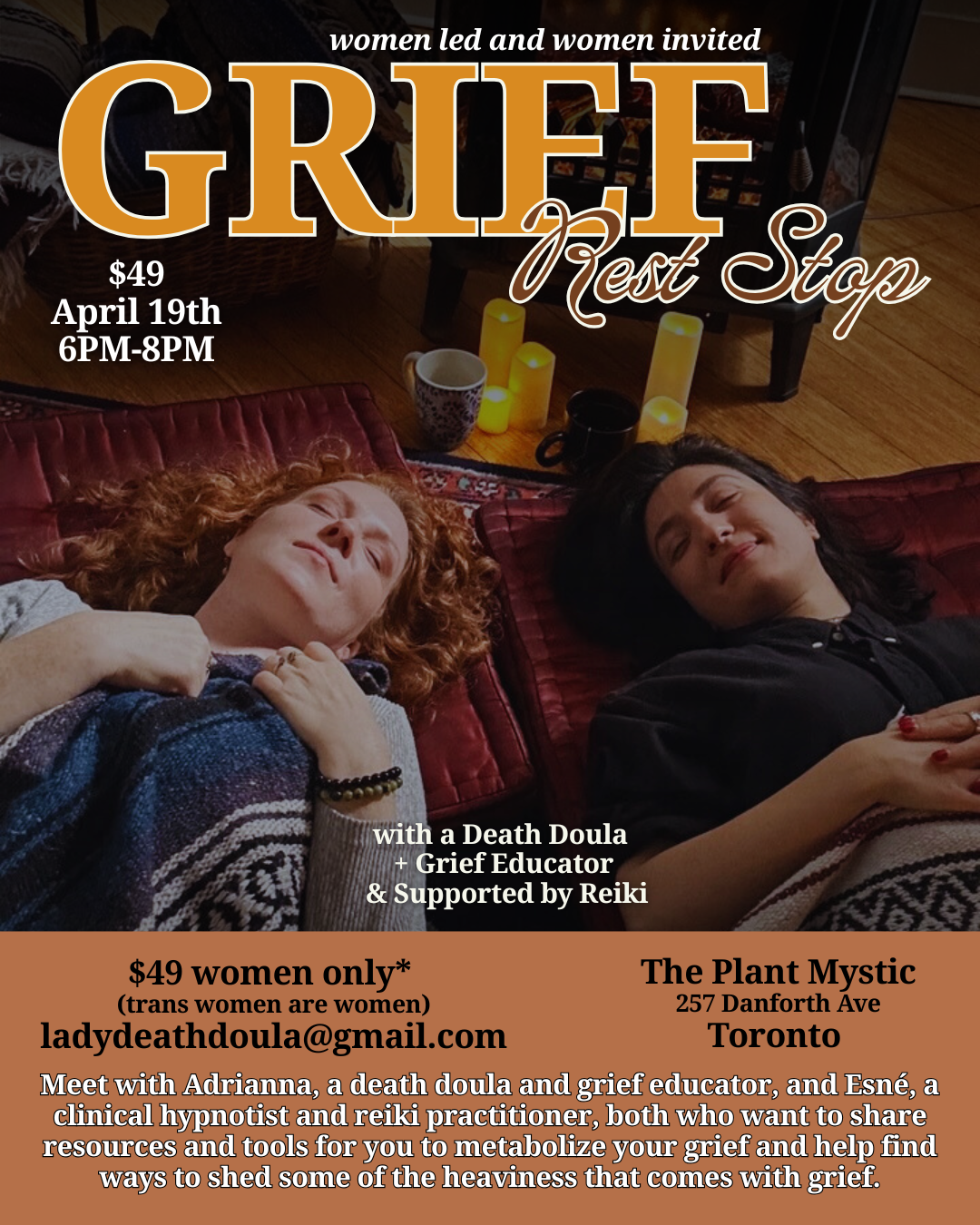 Grief Rest Stop, led by women & women invited April 11th + 19th